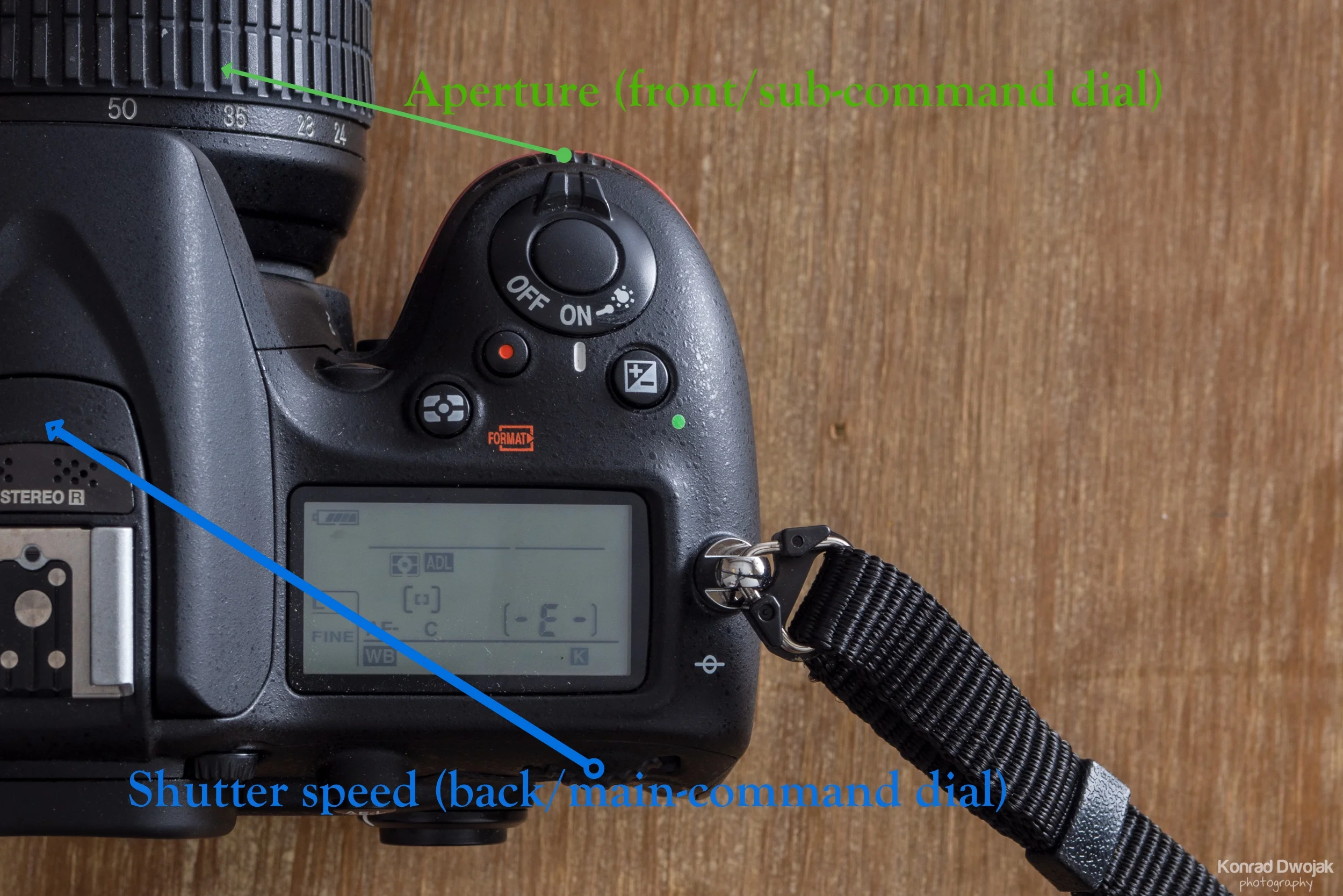 Remember that we are talking about adjusting aperture and shutter speed with command dials. Take a look at your camera now. The aperture blades are located in the lens and when you make changes to aperture with the command dial, the aperture blades change & move in your lens. The shutter curtains, which move with a varying speed depending on what shutter speed you set, are located in your camera’s body. When you adjust the shutter speed with the command dial, the changes therefore take place in the camera. In Nikon DSLRs, the front command dial (sub-command dial) changes aperture and the back command dial (main command dial) changes shutter speed. Take a look again at your camera. The lens with the aperture blades is in front part of the camera so the front command dial (sub-command dial) will change the aperture. Accordingly, the shutter blades (in you camera) are behind the lens (or in the back) so the back command dial (main command dial) changes the shutter speed. I know it sounds very obvious and straightforward but it took me a few hmm … years to notice it, which makes things much easier to remember which command dial does what. I hope this little tip will also help you with remembering which command dial changes aperture and which command dial changes shutter speed. By the way, if you shoot in Aperture Priority or Shutter Priority, the same rule applies, meaning the back/main command dial changes shutter speed and the front/sub-command dial changes aperture.